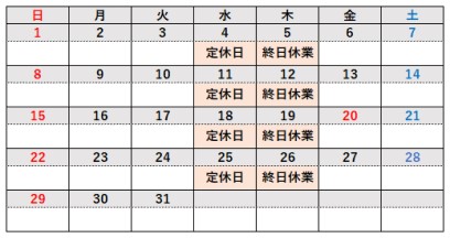 3月は毎週水曜日の定休日に加えて、毎週木曜日は休業させていただきます。